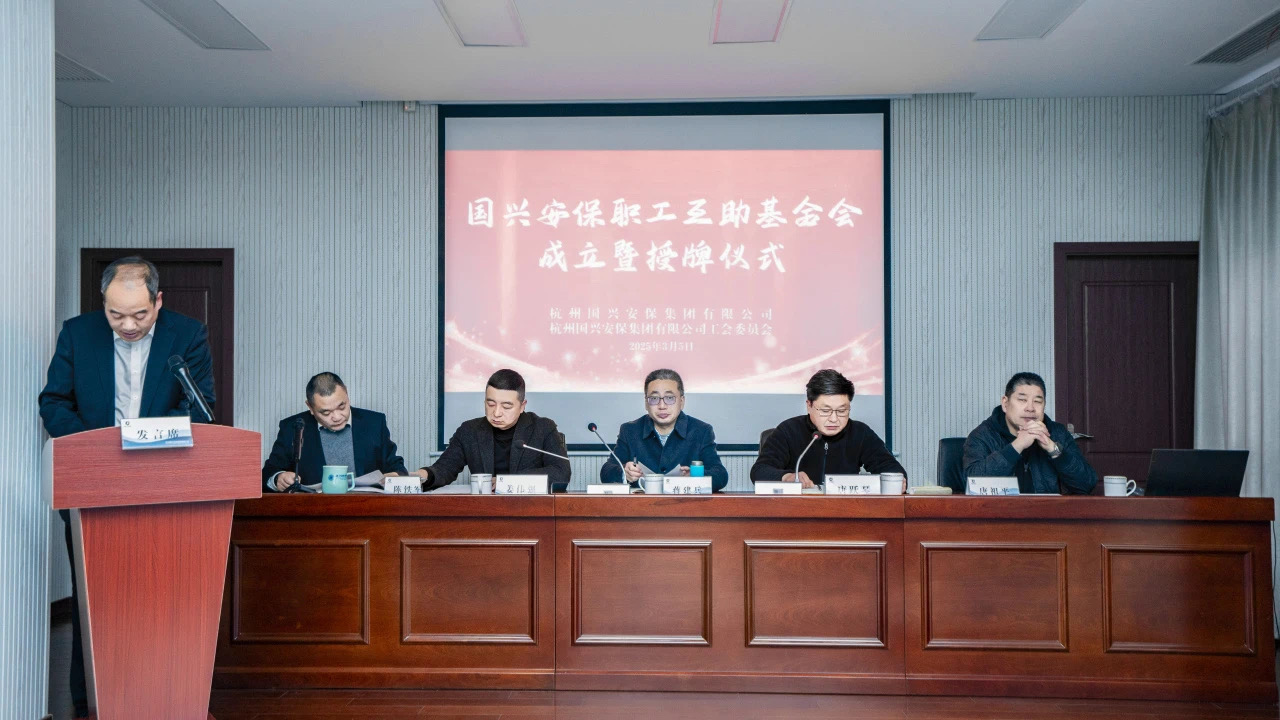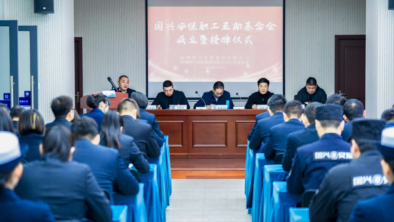 2025年3月5日上午,杭州国兴安保集团有限公司举办了国兴安保职工互助基金会的成立及授牌仪式。杭州市临安区总工会党组成员、副主席蒋建兵、国兴集团党委副书记唐跃琴、国兴集团工会主席唐祖平、公司班子领导及员工齐聚一堂,共同见证了这一历史时刻。
