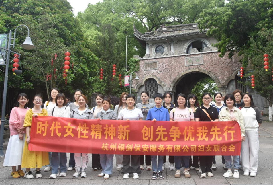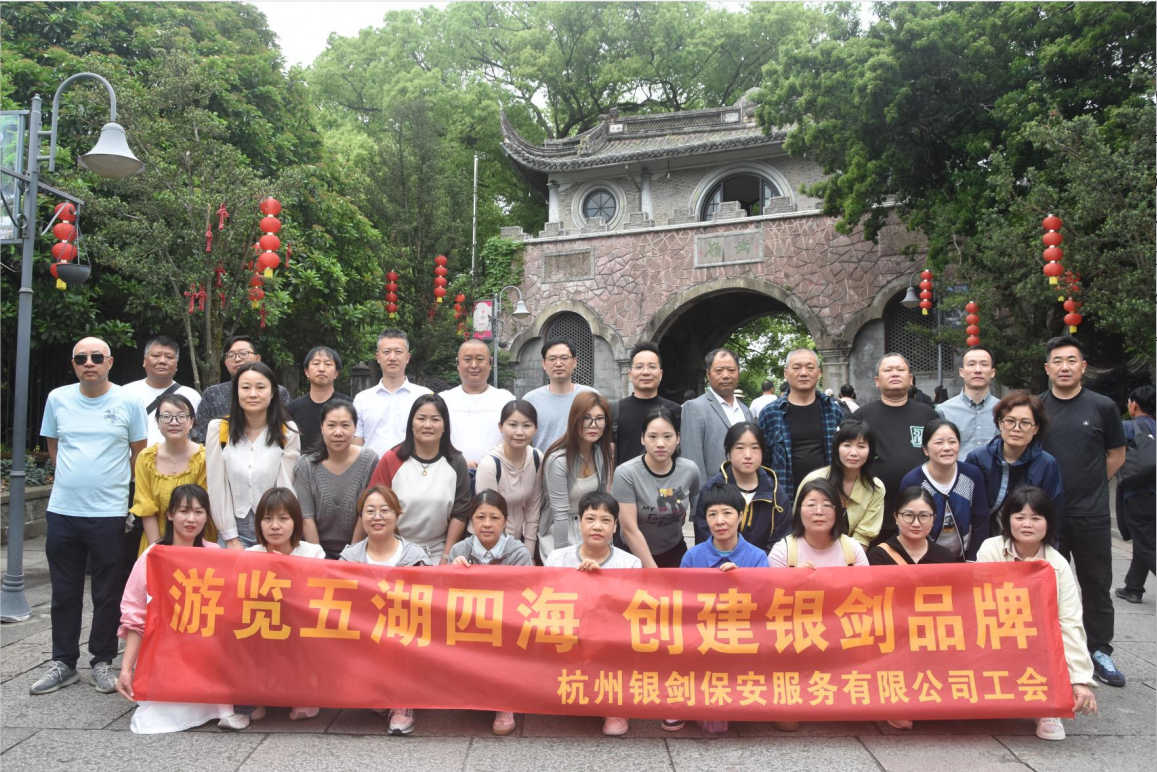 在武领城门前,公司工会组织拍摄了一张集体照。横幅上“游览五湖四海,创建银剑品牌”的标语格外醒目,它不仅体现了公司对员工视野拓展和品牌建设的期望,更激励着大家在工作中不断开拓进取,将银剑保安的品牌影响力传播到更广阔的天地。全体员工整齐列队,面带微笑,用镜头定格下了这一充满激情与梦想的时刻。