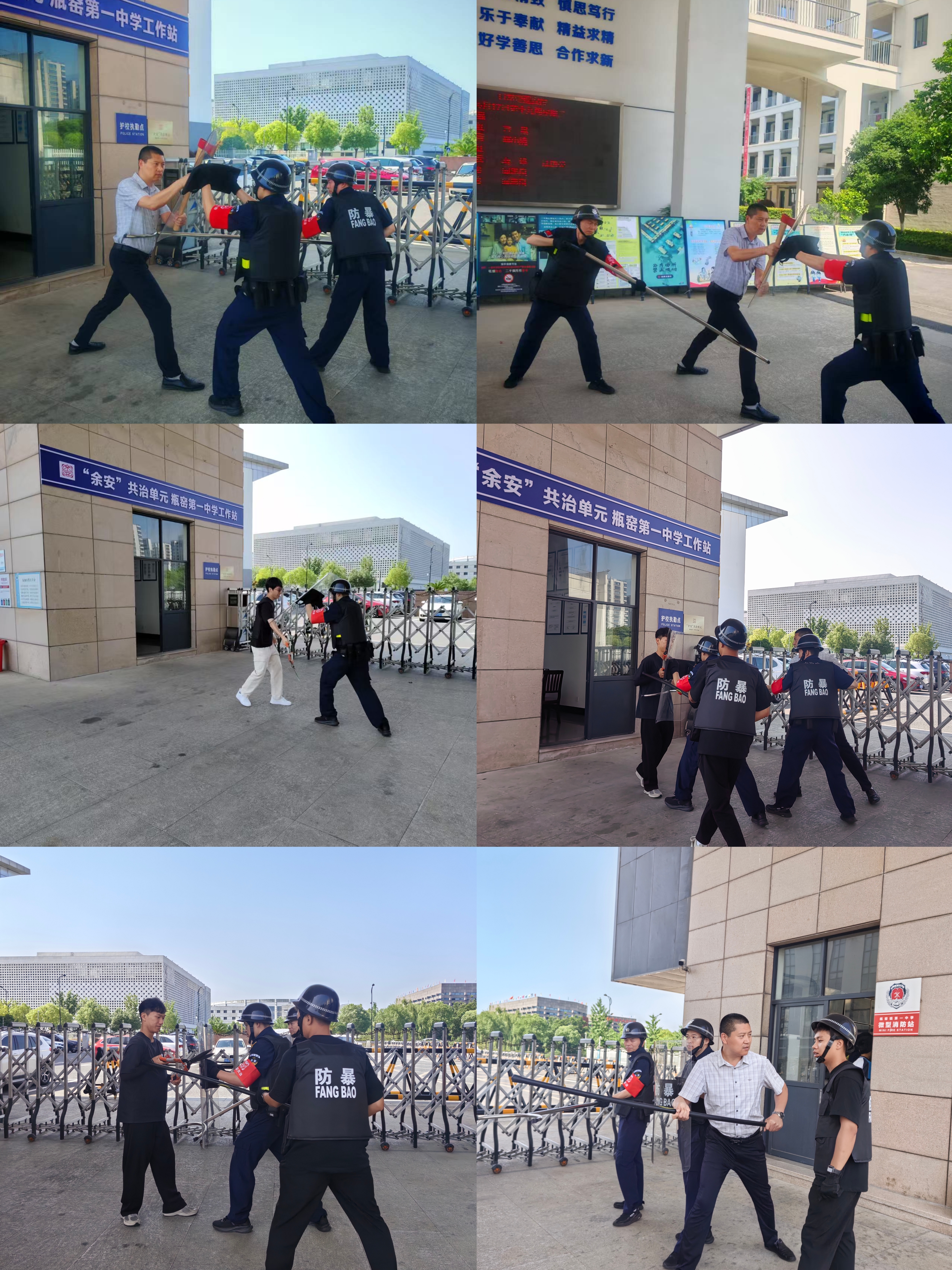 为进一步强化校园安全防线,提升安保力量与男教师应急处突能力,浙江中宸安保服务有限公司派驻在瓶窑第一中学的安保队伍于2025年6月17日上午9:30-10:00在学校大门口开展最小应急单元作战演练。现将本次演练总结如下: