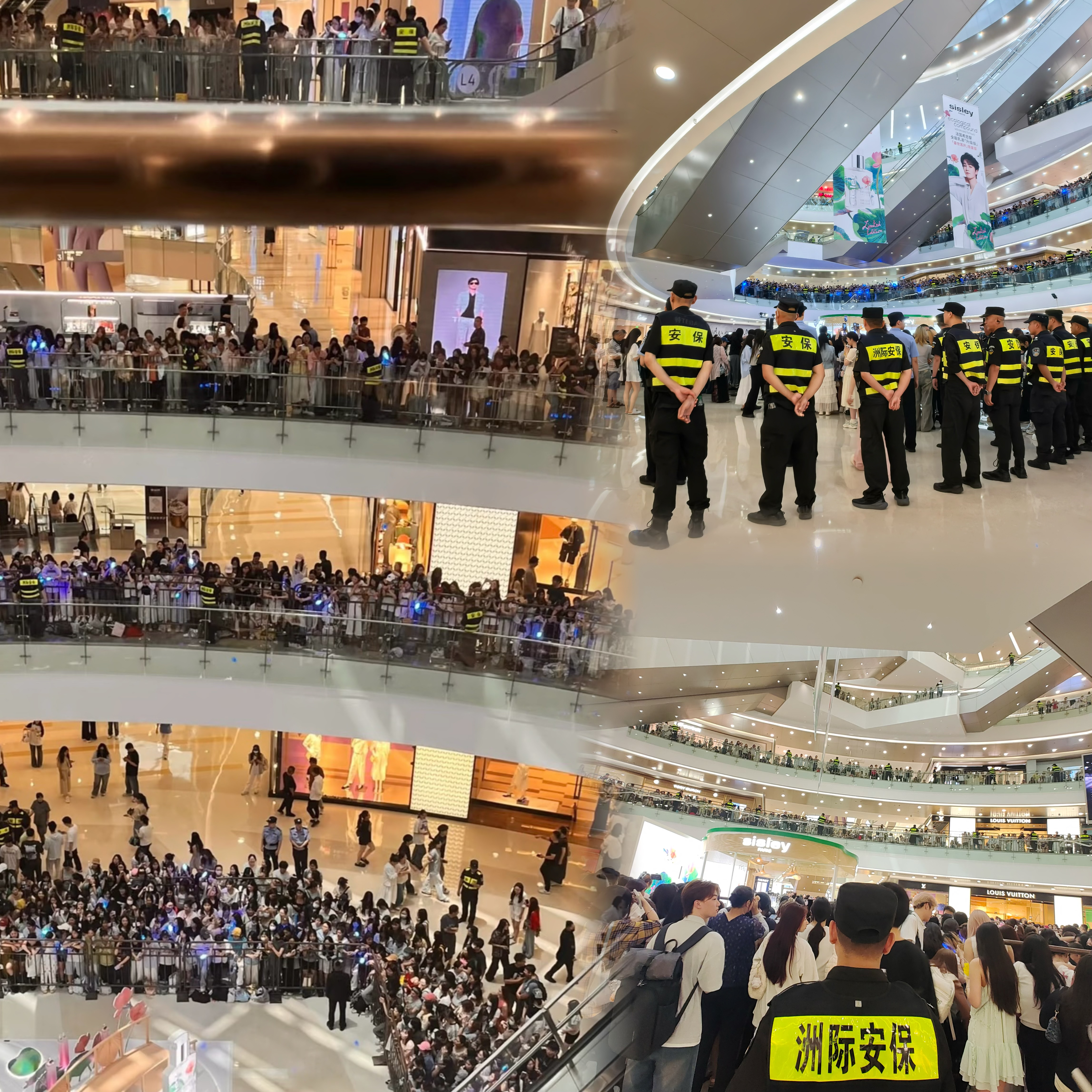 活动前夕,我们深知粉丝众多带来的安保压力。为此,对杭州万象城活动区域展开全方位场地调研,地形地貌、面积结构、通道分布无一遗漏,仔细排查周边治安隐患并推动整改。结合活动规模与预计人数,科学规划人员布置,划分多个安保区域,安排经验丰富的队员,明确职责分工,确保安保工作无死角。