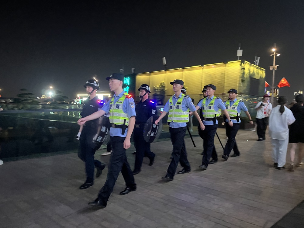 位于钱塘江畔的杭州城市阳台,是近几年杭州新兴的网红打卡胜地,每晚两场的“钱江新城灯光秀”,吸引了数以万计的游客。加上杭州大剧院前每晚上演的音乐喷泉,时间恰好和灯光秀错开,短时间内人流的巨大聚集,堪比一场大型活动,是对安保工作的极致考验。绿城保安公司专门抽调了大批身强体壮、孔武有力的保安队员在城市阳台担负执勤任务,在现场公安民警的带领下,开展治安巡逻、维持秩序、疏导人流等警保联动工作。他们分分秒秒神经紧绷,拉隔离栏,围人墙防护,佩戴肩灯,手拿喊话器不断提醒游客注意安全,化解游客之间矛盾,帮助游客寻找走散家人等,一场秀下来,队员们无暇欣赏眼前的璀璨,个个汗流浃背,却没有一个喊苦喊累。截止目前,钱江新城进行灯光秀和音乐喷泉期间,接受绿城保安员提供安全服务的市民和游客达100多万人次以上,没发生过一起安全事故。赢得了公安机关的高度赞誉和游人的一致点赞。