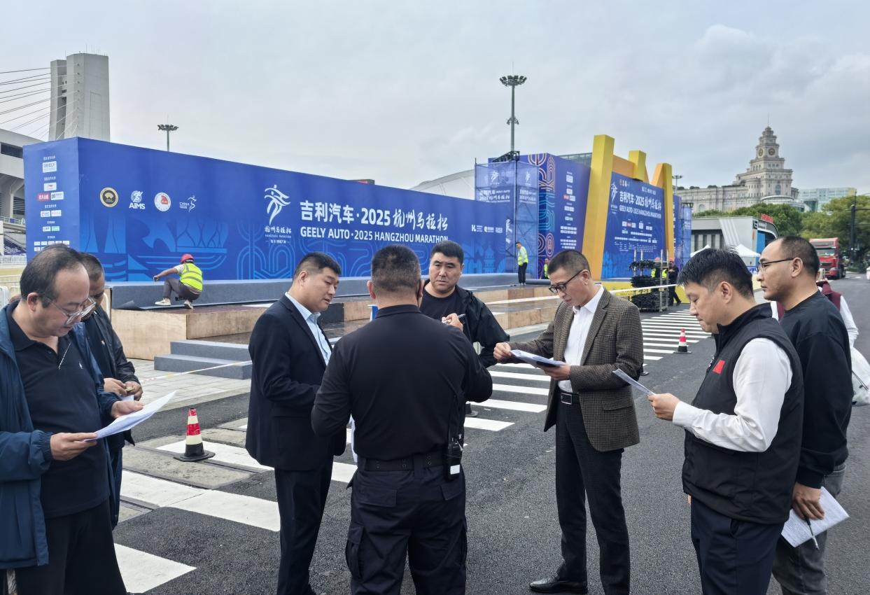 赛事当日凌晨1时起,安保团队对赛道沿线开展地毯式隐患排查;4时全员准时到岗,迅速投入防爆安检、秩序维护、人流分引等关键任务。无论是入口处的严格安检,还是赛道旁的动态巡防;无论是人群中的暖心指引,还是突发情况的快速处置,安保队员们始终以挺拔的身姿、专业的素养,成为杭马赛道旁一道令人安心的风景线。