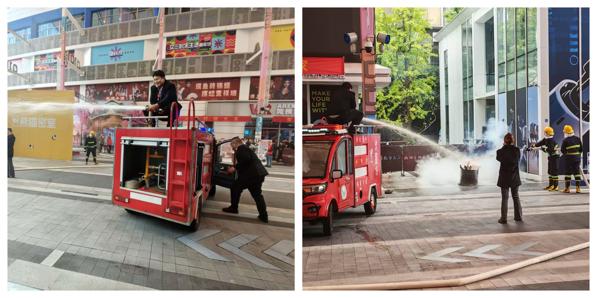 随后,器材实操环节是本次演练的重点。在微型消防车操作区,教练员详细讲解了车辆启动、水带铺设、水压调节等关键步骤,保安员们轮流上手实操,精准完成“对准火源根部喷射”的核心动作,熟练掌握了微型消防装备的实战运用技巧。