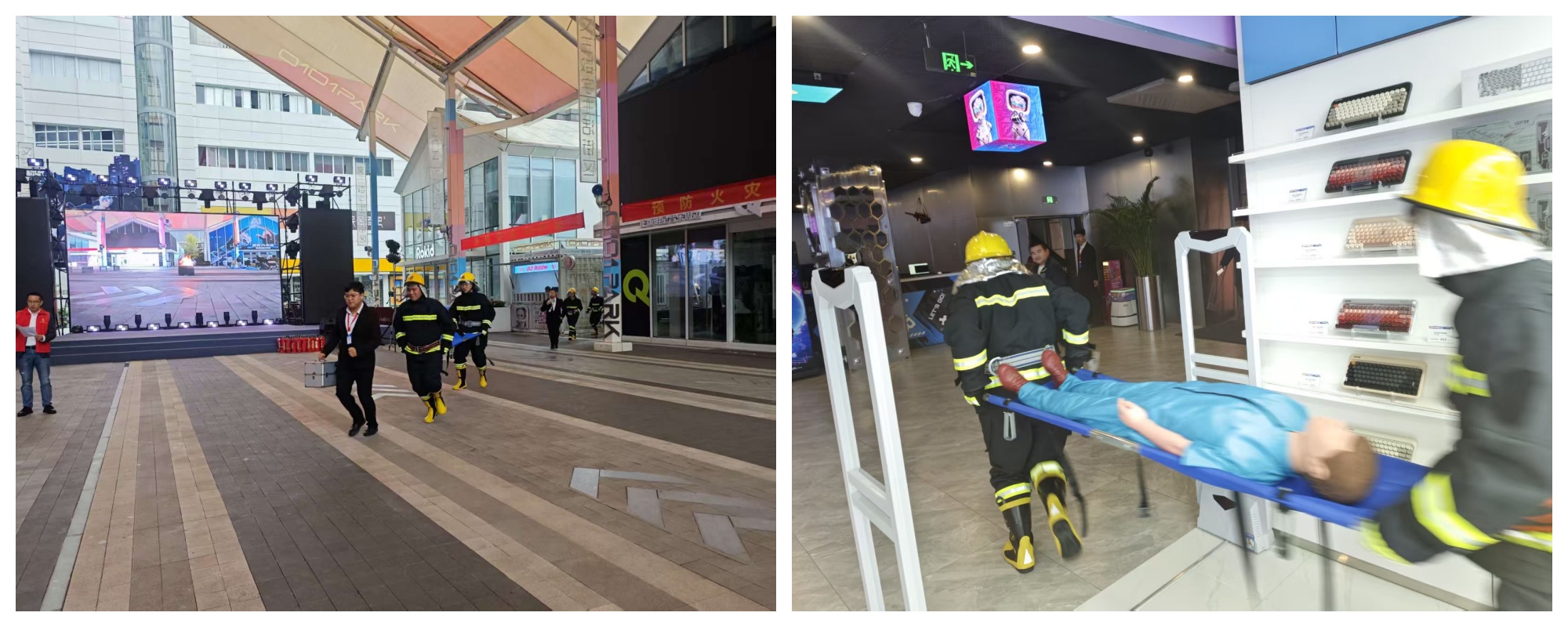 安全救援,生命至上。演练现场还设置了伤员救助专项环节。伤员搬运演练中,保安员们熟练运用担架搬运,快速将“伤员”转移至安全区域。