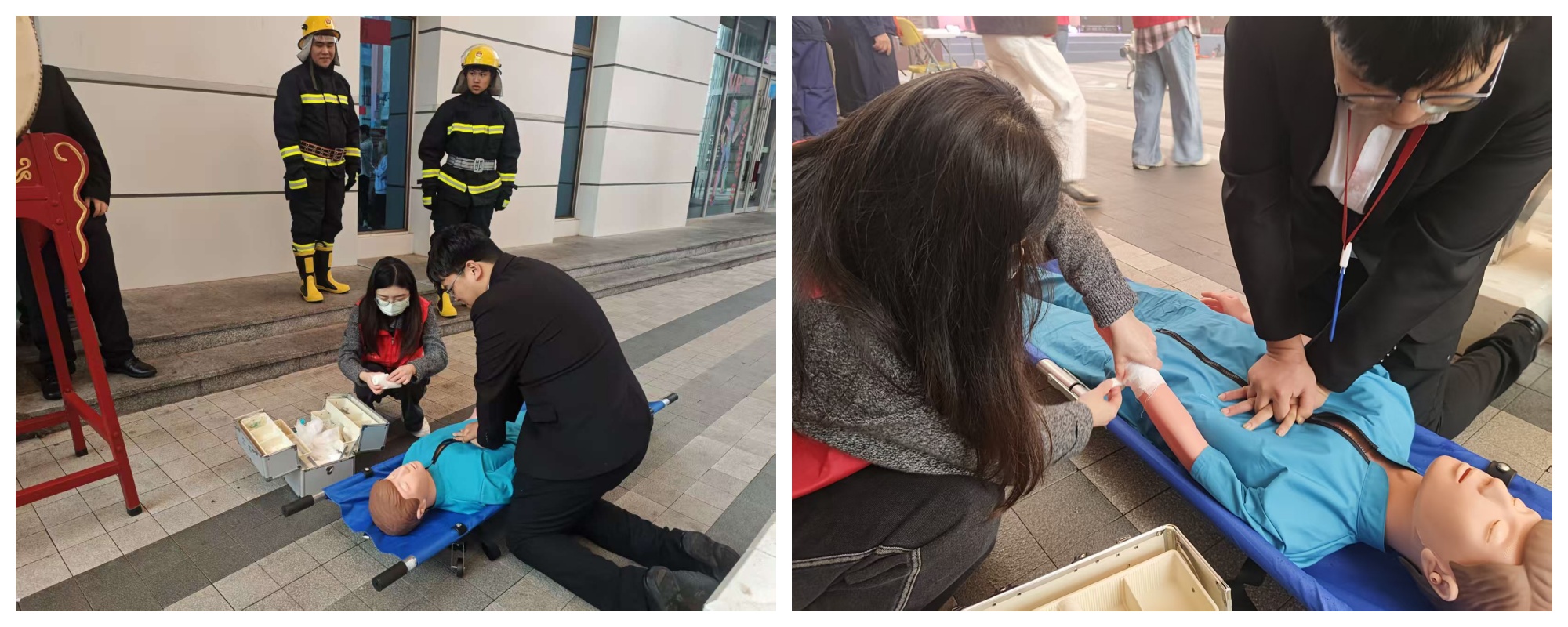 心肺复苏(CPR)与伤口包扎实操中,在专业医护人员的指导下,大家精准掌握按压深度、呼吸频率等关键要点,规范完成伤口清洁、止血、包扎等操作,为应对火灾中的人员受伤情况积累了实用经验。