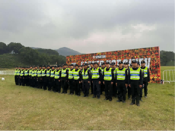 赛前,银剑安保团队提前“备战”,与主办方反复沟通磨合,逐一厘清赛事流程、参赛人员数量、场地周边环境等细节,进而打磨出兼顾全面性与严谨性的外场安保方案。安保人员穿梭于赛场周边,对交通要道、出入口等关键位置进行地毯式排查,不留任何安全死角;同时有条不紊地布设防护栏、张贴警示标识,用专业与细致为赛事安全筑牢第一道防线。