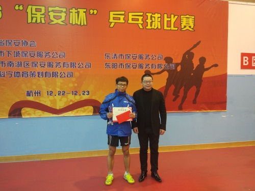 12月22日至23日,浙江省第二届“保安杯”乒乓球比赛在我市江干文体中心举行。由杭州市保安协会、基层基础管理支队保安大队带队,下城保安服务公司郑嘉(女)、余杭保安服务有限公司周明明、杭州市安保集团服务有限公司李斌、银剑保安服务有限公司王志涛4名运动员组成的杭州保安代表队,经过激烈角逐,取得优异比赛成绩。其中,混合团体获得第六,郑嘉夺得女子单打冠军,李斌夺得男子单打季军。
