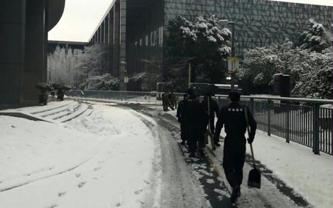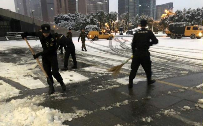 1月25日,杭州市迎来了2018年入冬的第一场降雪。厚厚的积雪给大家的出行带来诸多不便。杭州市安保服务集团有限公司驻市民中心特勤大队高度重视,充分认识抗雪防冻工作的重要性和紧迫性。为保障好市民中心行政区域车辆、人员的进出顺畅与安全。1月26日清晨,特勤大队联合武警中队、物业及江干区防汛办等单位开展扫雪除冰活动。此次扫雪除冰活动,市民中心特勤大队共计组织出动人员60余人次。
