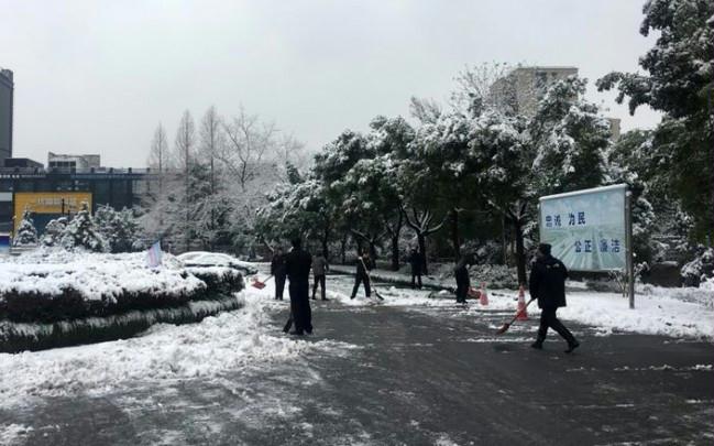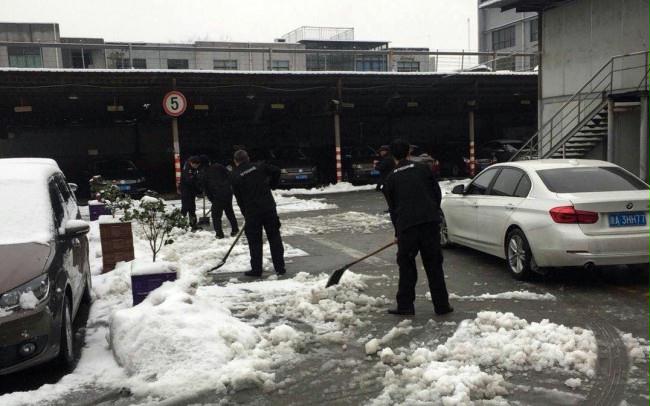 1月25日起, 杭州市普降中到大雪乃至暴雪,杭州市安保服务集团有限公司保安五部连续奋战3天3夜,全力迎战冰雪、保畅救援,确保各客户单位未发生一起伤亡事故。在这场抗冰雪保畅通的战斗中,保安五部全体安保人员发扬特别能吃苦能战斗的精神。特别是派驻到高速杭州支队的全体安保人员,因连日降雪和持续低温,造成路面结冰情况极其严重,给过往车辆及司乘人员生命财产安全造成了极大威胁,他们在连续10几个小时的扫雪铲雪工作中无一人退宿,成为严寒中的“铁人”,大雪中,高速执勤特别危险,队员廖胖为在执勤时拆除事故车辆受伤,他用实际行动护卫着辖区道路交通安全、温暖着过往百姓的心。