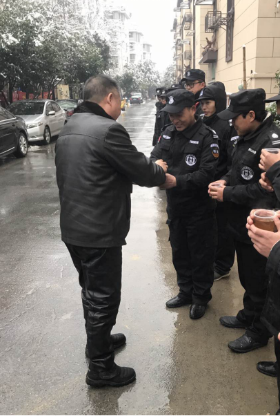 风雪无情人有情,公司领导为鼓士气亲临一线送姜汤的一幕,给在严寒中执勤的队员心里留下了暖心的印像,并及时传递了公司的关怀和体恤之情,员工们纷纷发朋友圈点赞:“寒风呼呼,冷人身;热气腾腾,暖人心”。