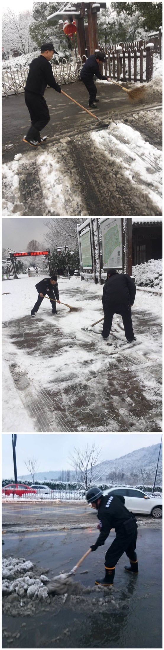 2018年1月25日,杭城迎来了今年立冬以来的第一场雪,使大地万物银装素裹,但道路上厚厚的积雪也为广大群众的出行带来了不便。为畅通道路,方便客户出行,鼎华保安公司组织保安员多次开展了义务扫雪活动。