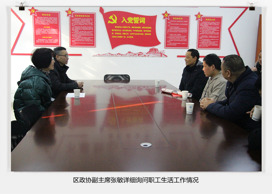严冬显寒意,慰问暖人心。2月2日,随着新春佳节的到来,区政协副主席张敏、区人大办公室王力、区总工会党组成员帅新永等一行亲自前来我公司看望慰问建档困难职工,为他们送来了慰问金,米、油等生活用品。公司总经理赵南跃,副总经理陈铁军、工会主席崔保华等陪同。