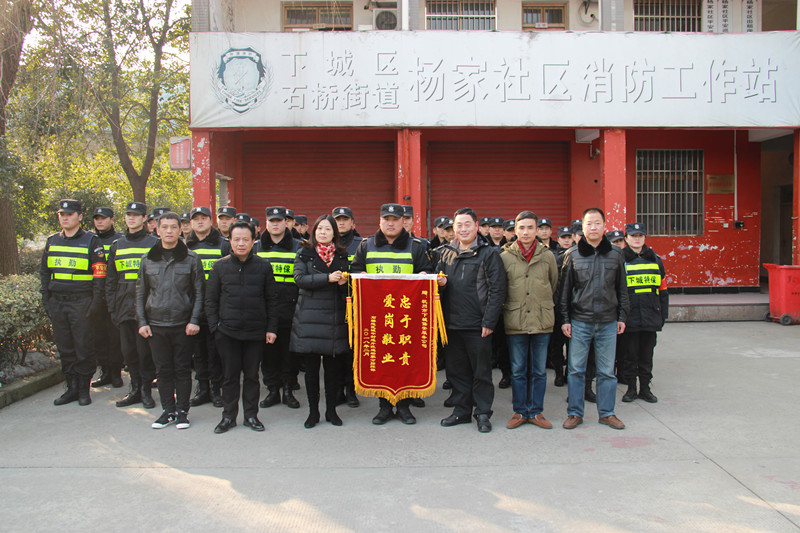 近日,石桥分指挥部指挥长王广强,副指挥长马明富、吴伟刚为下城保安公司赠送了锦旗,感谢保安公司的辛勤努力,保障目前“四村连片”改造工作的顺利开展,同时希望下一阶段下城保安公司继续做好石桥的维稳安保工作,为石桥“四村连片”改造工作的推进做好服务保障。