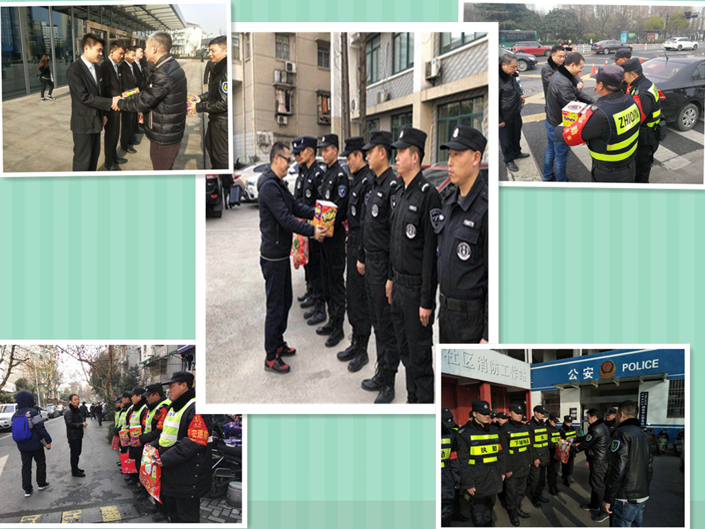 2月11日上午,公司总经理章平、党支部书记陈谷安、副总经理戴建明和保安各部主要管理人员组成了多个慰问组,分别前往猎鹰突击队驻地,中国移动、杭州日报、消防支队、武林广场、浙江省儿保医院、嘉里中心等客户单位,对公司派驻的保安员进行节前走访慰问。
