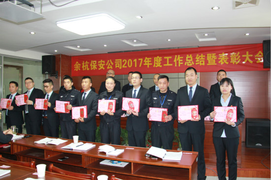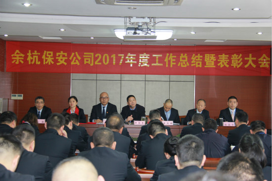 2月11日,杭州余杭保安服务有限公司召开2017年度总结表彰大会,总结2017年工作,部署2018年工作任务,表彰2017年度公司先进个人、先进集体和优秀管理干部,会议由副总经理金一主持,公司全体干部职工参加会议。