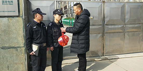 爆竹声声辞旧岁,焰花朵朵赢新年。富阳保安公司执行董事陈峰和班子成员及相关部门同志于除夕和春节期间分别前往城区几个重要的执勤岗点,向万家团圆时刻依然坚守岗位的保安员表示亲切慰问,并向大家拜年,送上新春的祝福。同时,详细了解在岗执勤情况、安保方案落实情况,要求在这个特殊时期必须紧绷安全这根弦,与客户保卫部门密切配合,确保安全防范万无一失,平平安安渡过春节。