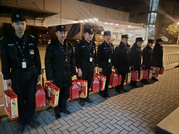 春节期间,为确保保安队伍以最佳的精神状态投入各项保安工作,浙江德邦保安公司领导带领保安部经理及大队长深入一线,赶赴公司各执勤点检查春节安全保卫工作的落实情况,并慰问坚守在一线岗位上的广大保安员。