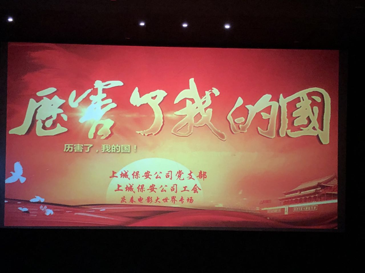 为深化中国特色社会主义和中国梦宣传教育,弘扬民族精神和时代精神,引导员工进一步树立正确的历史观、民族观、国家观、文化观。3月23日,公司党支部、工会组织员工在杭州庆春电影大世界观看电影《厉害了,我的国》,一起见证祖国发展的辉煌成就,一同感受新时代的大国豪情。