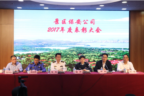 4月2日下午,集团下属景区保安公司在西湖博物馆召开2017年度工作总结暨表彰大会。集团公司党委书记、董事长郑钧,景区保安公司总经理段利华、财务总监何伟及公司各部门(大队)负责人、保安骨干、先进个人等130余人参加会议。区(局、委)党委委员、景区公安分局党委书记、局长杨辉,景区行政执法局党委书记、局长冯刚,景区行政执法局党委委员、副局长麻剑辉应邀出席。会议由景区保安公司总经理段利华主持。