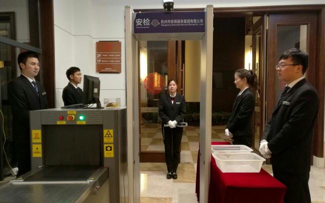 受湖州市警卫局的邀请,杭州市安保服务集团有限公司承担了本次会议的安检任务。本次会议具有层次高、嘉宾多、标准严、时间长、要求高等特点,为确保会议安检任务的顺利完成,公司董事长、总经理郑雪林亲临现场检查指导安检工作。安检管理员牢固树立政治意识、责任意识、服务意识,始终以大局为重,尽心尽责做好各项管理工作,务实做好岗前教育培训,岗中巡视检查,岗后集队点评,确保公司安检队伍的精气神。