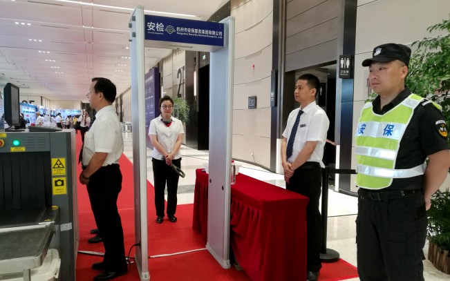 受承办方的邀请,杭州市安保服务集团有限公司承担本次大会的安保任务。为确保安保工作的万无一失,安保现场负责人紧紧围绕“绝对安全、万无一失”的工作目标,认真制定安保工作方案,提前安装调试安检设备,积极组织安保人员提前集队上岗,认真做好安保人员的岗前教育培训,明确岗位职责和工作要求,强调执勤纪律,细化各岗位职责要求。