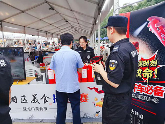2018年6月9日至10日,富阳保安公司借助“富春山居 乐享百味”富阳区美食擂台赛暨龙门美食节的平台,开展了一次“旋风熊猫”灭火器产品的落地展销活动。
