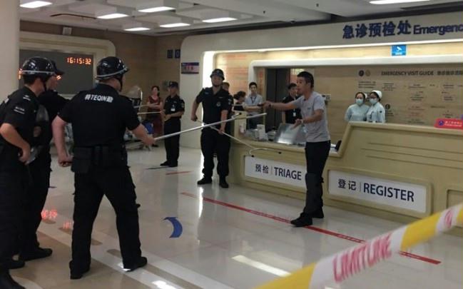 为了进一步提高医院暴力恐怖事件应急处置能力,维护正常医疗秩序,确保就医群众、医务人员人身安全和医院财产安全,6月28日下午16点,杭州市安保服务集团有限公司保安二部驻浙医二院保安队在急诊1楼大厅开展了一场反恐应急演练。本次反恐应急演练由浙医二院保卫科组织,保卫科领导现场指挥,1楼急诊工作人员配合,驻点保安队,消控中心工作人员等30余人参加了演练。