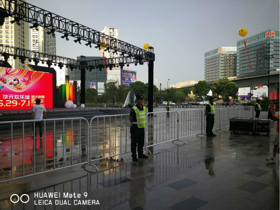 为确保欢乐城开业盛典系列活动安全有序进行,余杭保安成立由保安部经理陈操、临平一、二大队宓云岗、张课大队长组成的安保领导小组,详细制定安保工作方案,坚持“严之又严、细之又细、实之又实”的工作要求,采取定人、定时、定岗、定责的方式,合理进行任务分工,全面肩负起各重点部位安保职责。