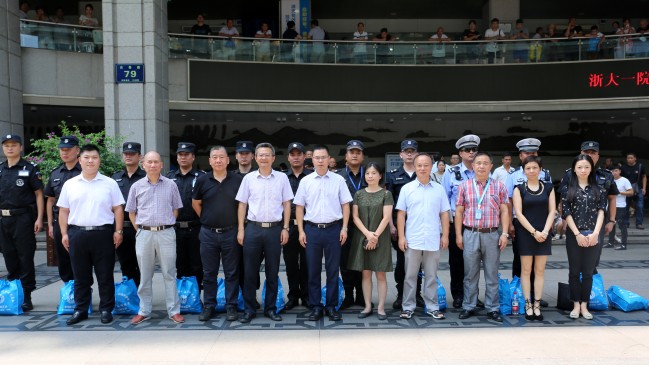 7月25日上午,市总工会副主席张坚申、市旅贸工会主任张也平一行在杭州市安保服务集团有限公司总经理郑雪林、总经理助理邵佳楼、工会主席谢晓萍的陪同下,持续开展“炎夏送清凉”活动,亲切地慰问了公司驻浙一医院、浙二医院安保执勤点正在高温一线辛劳执勤的保安员们,并给他们送去了防暑降温慰问品,让坚守在高温一线的保安员们实实在在感受到了公司与工会组织的关爱,浙一医院党委副书记邵浙新及浙二医院安保负责人给予热情接待。