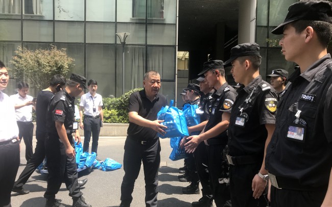 公司与工会领导的关心和慰问,使保安员们倍感温馨和鼓舞。高温仍将延续,但保安员兄弟们纷纷表示,一定要把领导的关爱化作工作的动力,一如既往地坚守岗位,一丝不苟地做好安保服务保障,为“平安”杭城建设做出自己的贡献。