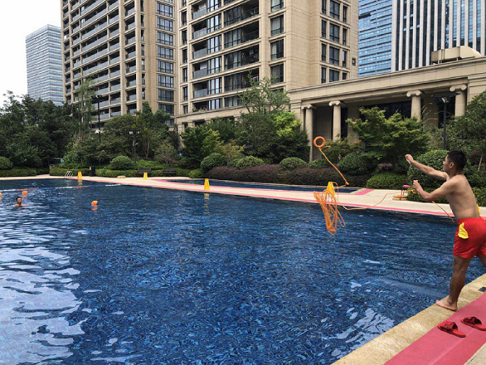最后,总指挥对本次演练进行小结。通过此次溺水救护演练,使业主了解防溺水的有关知识,认识溺水的危害,进一步提高广大业主防溺水的自觉性以及识别险情、紧急避险、遇险逃生、自护自救的能力。更是提高了救生员的救护能力,当遇到溺水意外事故或严重疾病而引起呼吸、心跳停止时,必须争分夺秒地进行心肺复苏术,直至专业救护人员来到之前不应停止抢救。在生命面临威胁的时候,救生员多掌握一点自救互救知识,游泳者生存的希望就会成倍增加。
