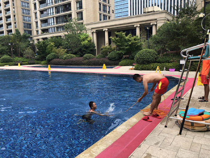 2018年7月24日,浙江绿城保安服务有限公司滨江保安队在明月江南游泳池组织开展了溺水救护演练。