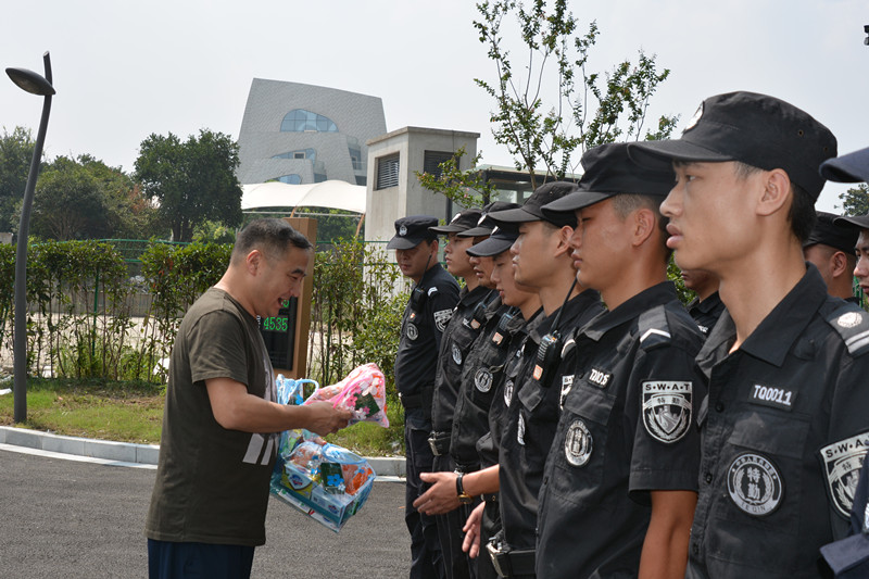 夏至时节,气温日渐炎热。为感谢那些不畏高温酷暑、依旧坚守在户外一线的员工,2018年8月10日,杭州上城区投资控股集团有限公司副总经理、基层工会联合会主席张毅勇在杭州上城区保安服务有限公司副总经理汪乾的陪同下,冒着酷暑,看望了坚守在高温一线的保安员们,为他们送去了防暑降温慰问品。