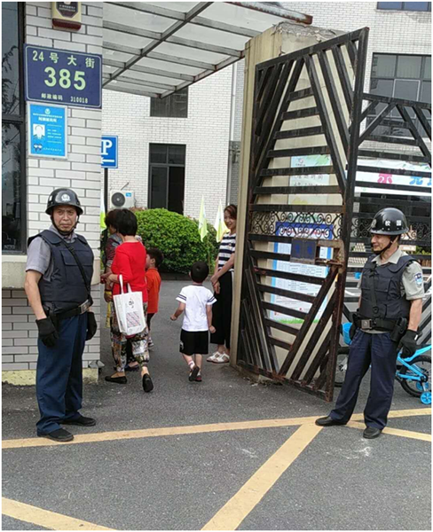 温度连续三十六七度,虽然正值暑假,但校园保安人员仍然头顶烈日,坚持标准不降低,要求不放松。为了自身更为了孩子们的安全,他们身着刺防刺背心,精心守护着孩子和教职员工的安全。他们挥汗如雨,衣服湿了干,干了湿,但大家没有一句怨言,他们的无私付出是炎炎夏日里的一丝清凉同时为孩子们奉献出自己的一片爱心。