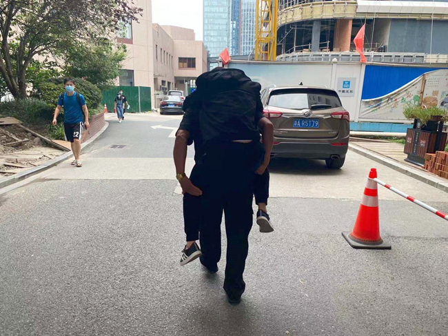 8月9日下午,江南下大雨前的湿热天气,公司保安五部某驻点安保队员姚水荣背起一位患者时,被人拍下了这张最美背影。
