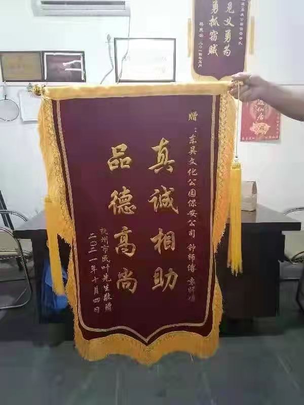 钟师傅赶到后发现一名男子焦急的在湖边呼喊,他立刻上前询问发生了什么事,经了解,是其手机不慎掉入湖中。钟师傅二话不说就脱掉工作服跳下湖去打捞手机。水性不错的钟师傅不一会儿就捞到了手机,递给了岸边焦急等待的游客。前来围观的市民朋友纷纷竖起大拇指为钟师傅点赞。第二天,那位游客特地送来了锦旗以表感谢之情。
