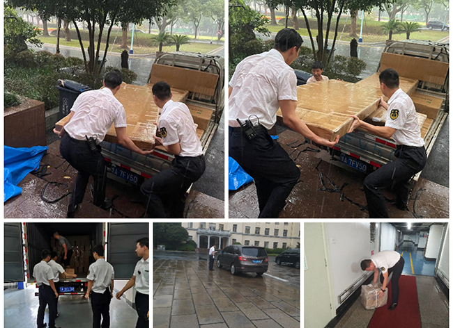 警卫组队员始终秉持服务至上的理念,在日常执勤工作中,用心做好安保服务工作,发扬“不怕苦、不怕脏”精神,展现出了队伍良好的素质、形象和服务意识,多次受到省政府办公厅黄信副主任的赞扬。今年7月份,驻点单位购买了一批手机屏蔽柜,警卫组队员积极配合帮忙卸运,并搬运至各个楼层。9月29日,胡伟伟、李志恒两名队员冒着大雨,奋力搬运办公家具,避免了财产损失。
