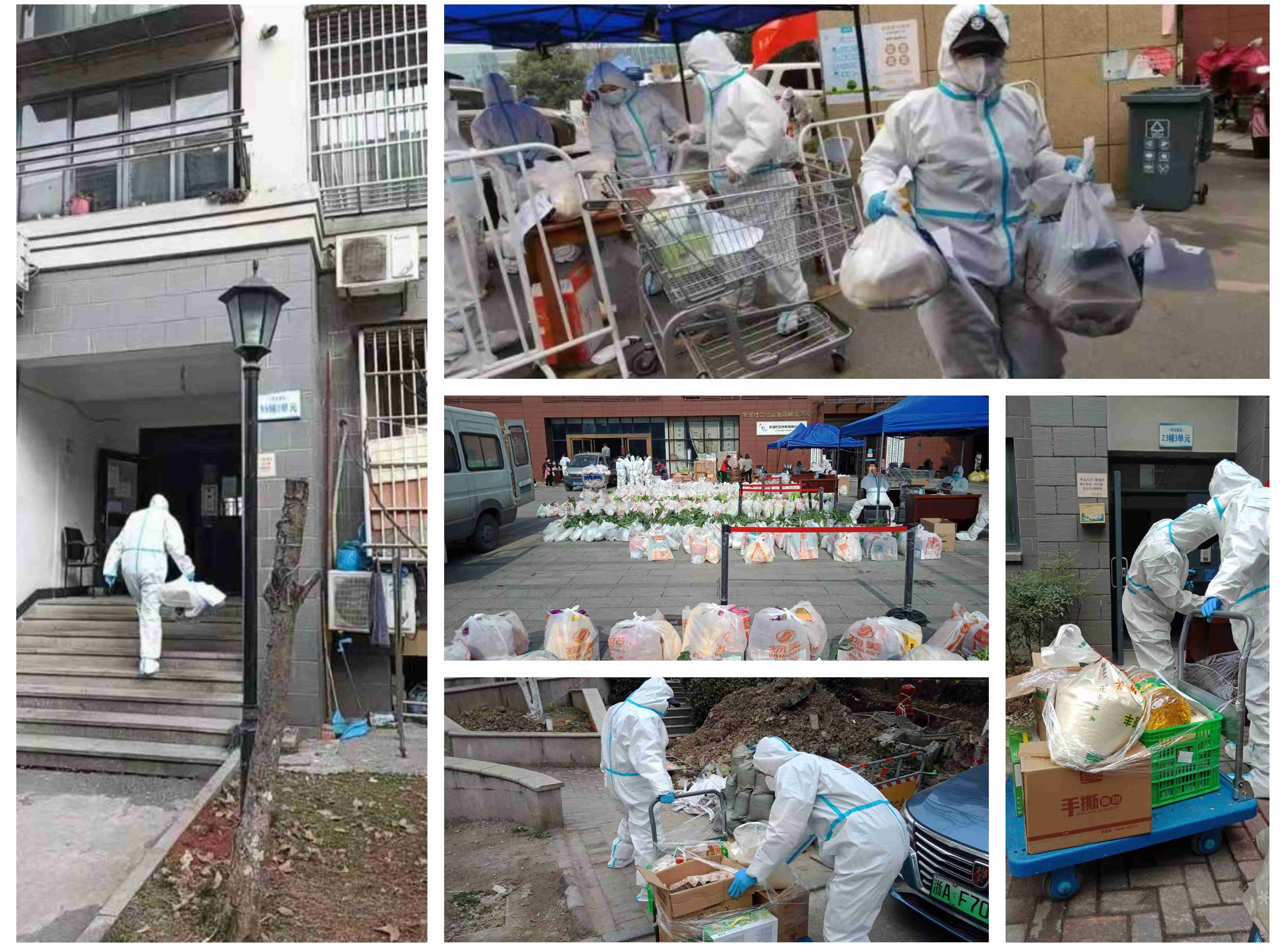 西溪雅苑没有电梯,为降低外出风险,保安员们动用自己的“洪荒之力”,确保“七日生活礼包”送到每家每户手中。这样的工作可不轻松。穿着密不透风的防护服爬楼,两栋楼跑下来衣服就被汗水浸透了。