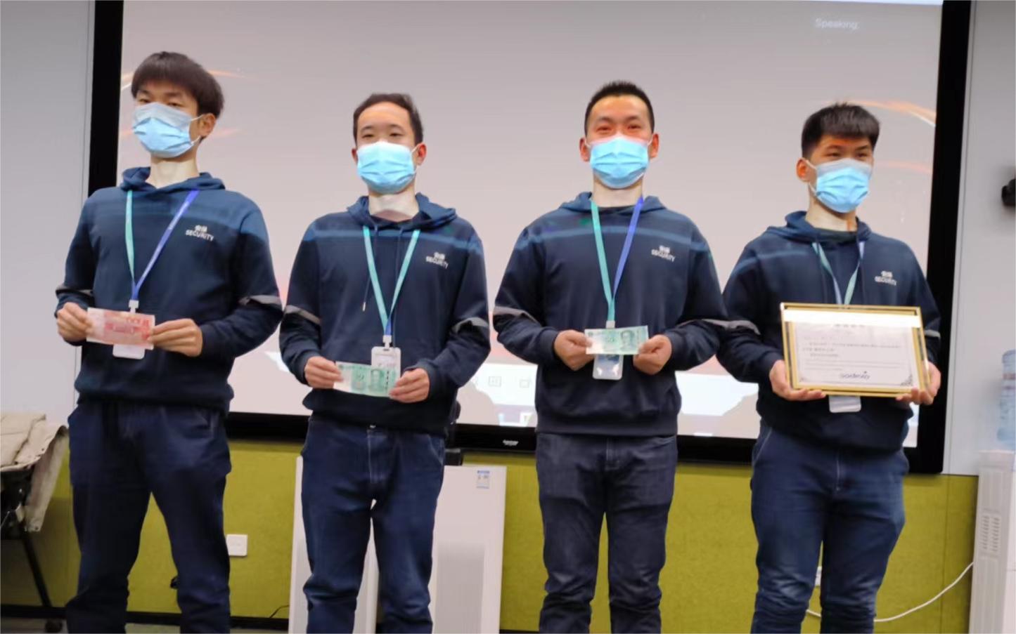 11月30日,我司驻爱力中心项目队伍因安保工作得到客户认可,李丰元、吴赛、樊顺兵与黄春元四位员工分别获得客户现金与奖状奖励。
