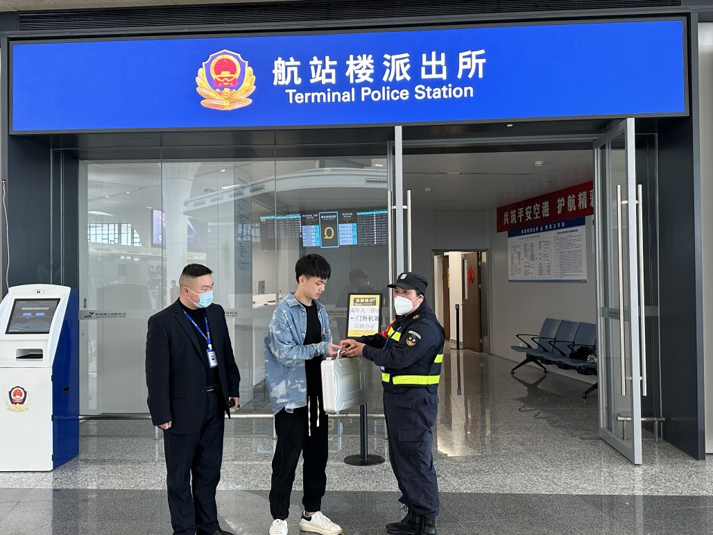 3点20分,浙江省公安厅机场公安局航站楼派出所人员到达现场,将箱子带回派出所。上午10点46分,派出所民警找到失主。失主到派出所后,查点物品,无一遗失,深受感动!