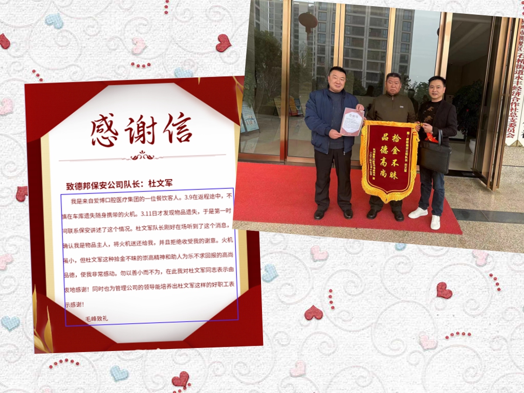文明优礼赞好人丨拾金不昧!德邦保安队长再获锦旗