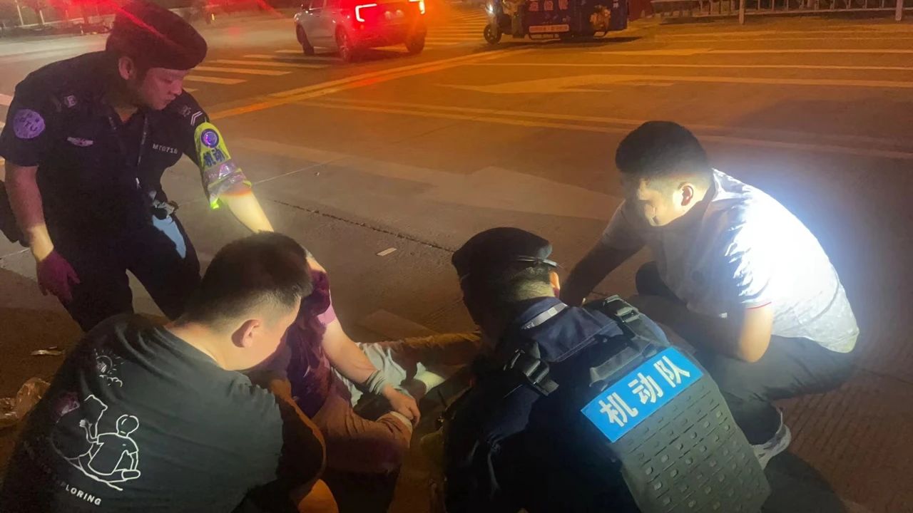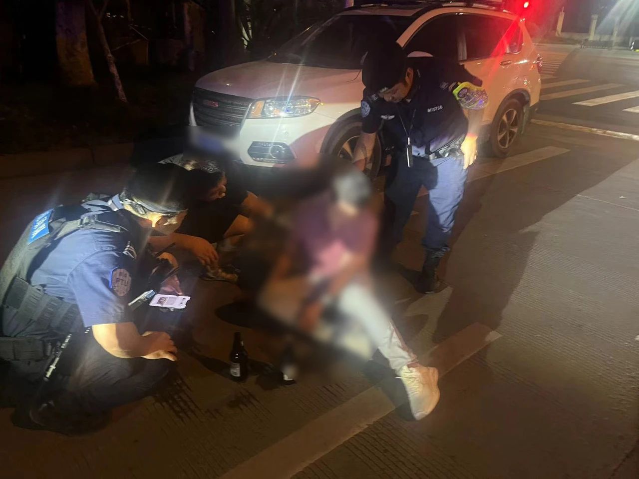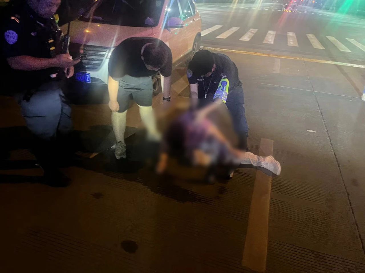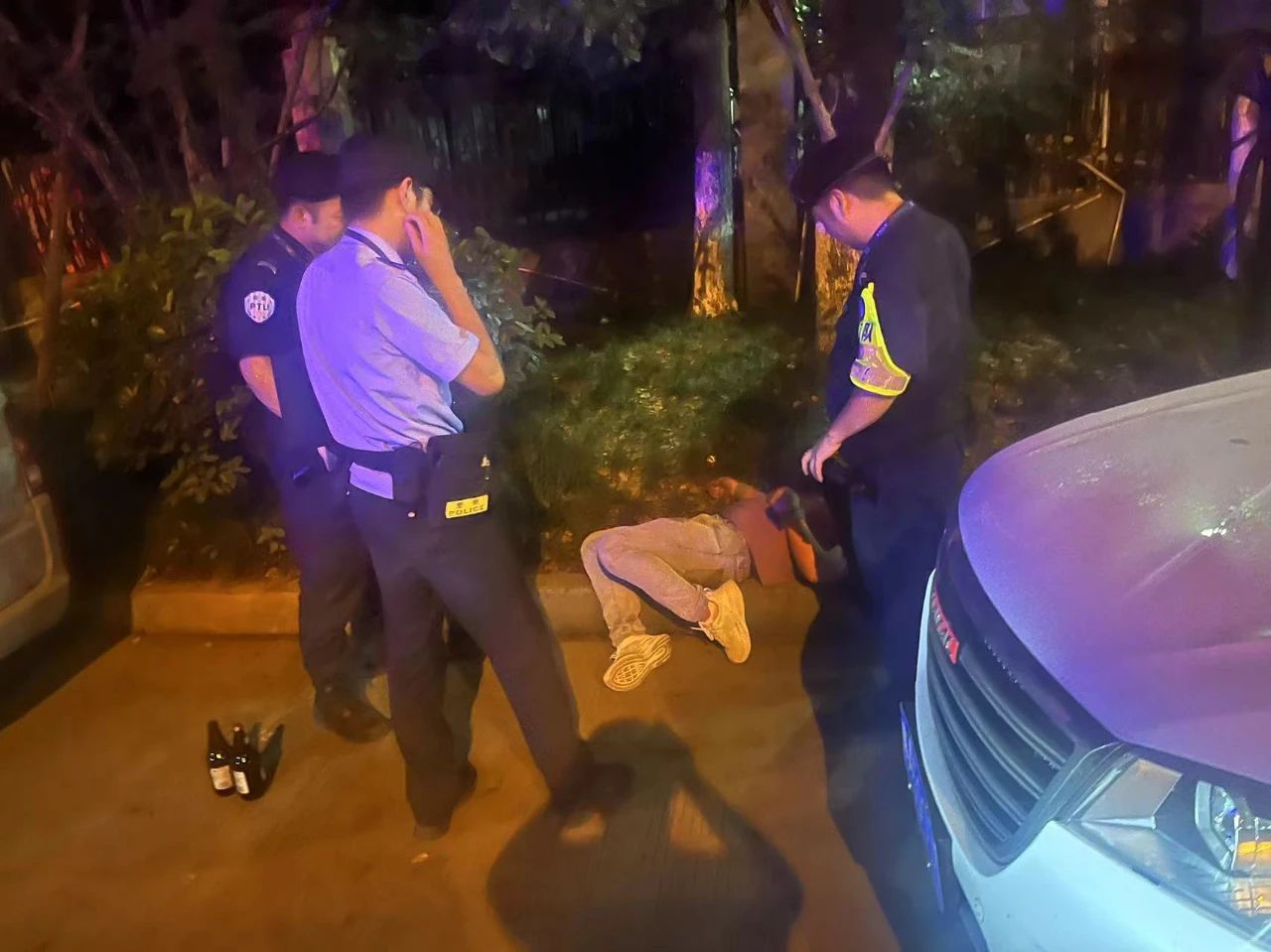 当日23:10,公司员工杨有福和秦晓东路过良渚街道庙长桥路与良运街交叉口时,发现一名男子躺在马路上,就赶紧上前察看。男子散发着浓烈的酒气,身旁还放着两瓶啤酒,疑似处于醉酒状态。“师傅醒醒,师傅醒醒,醒醒......”无论两人怎么呼叫,该男子始终没有回应。