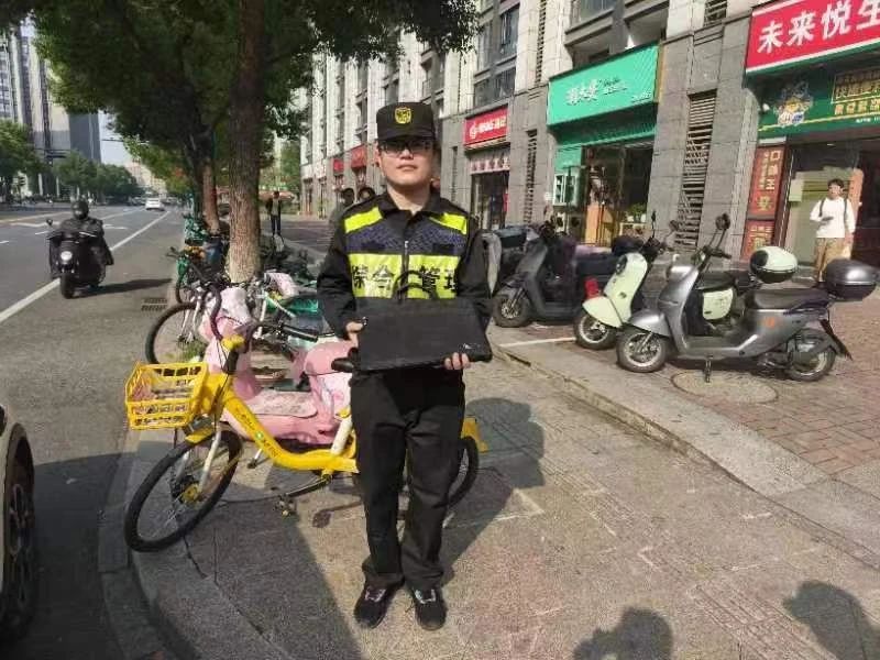 10月11日9:05,超晟公司驻杭州市余杭区五常街道市容项目员工刘华宇在五常街道同顺街巡查时,在一辆共享单车的车筐里发现一台笔记本联想电脑,询问路人无果后,便将情况报告了项目负责人,并按指示在原地等待。