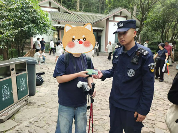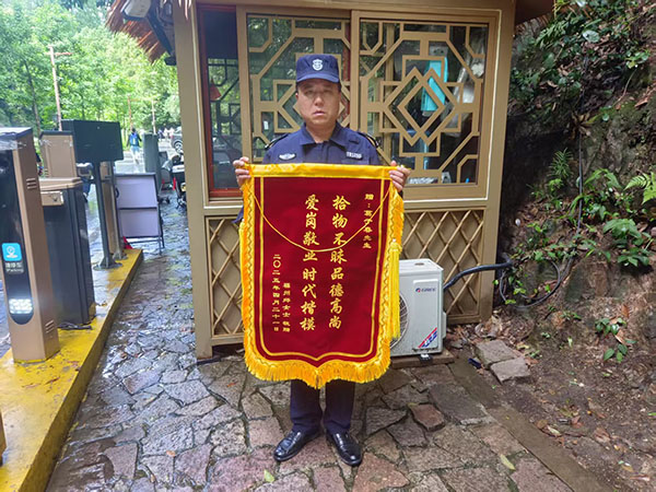 4月16日下午,在钱江管理处4号岗监控附近,一位游客的无人机不慎挂落在树上,多方尝试后仍无法取下。正当游客焦急之际,恰逢浙江盛安驻钱江管理处特保队员葛于春巡逻经过,发现情况后,葛于春立即上前询问,耐心了解事情经过,并安抚游客情绪。考虑到现场条件限制,他主动留下游客的联系方式,表示取下无人机后第一时间联系归还。