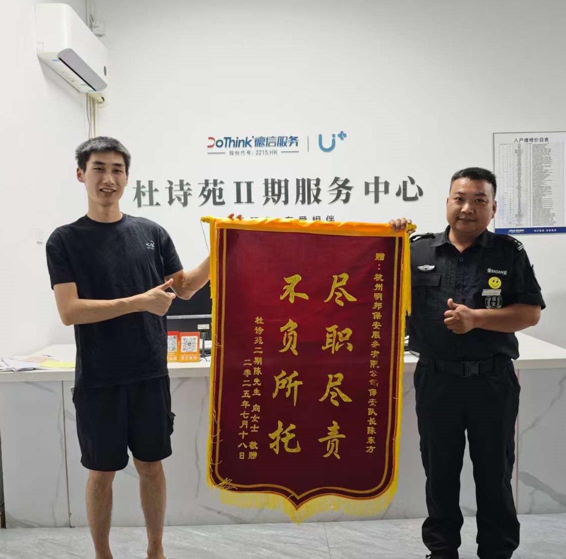 陈东方队长的这一事迹,不仅体现了个人的担当,更彰显了明邦服团队“以业主为中心” 的服务理念。在杜诗苑二期服务中心,正是有这样一群默默付出、把业主事当成自家事的物业人,用实际行动守护着小区的温暖与美好,让物业服务有了更动人的温度,也为其他物业工作人员树立了优秀榜样,传递着积极向上的正能量。