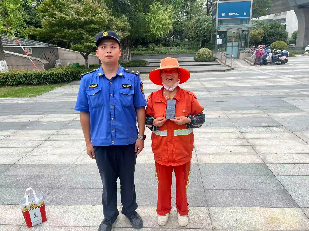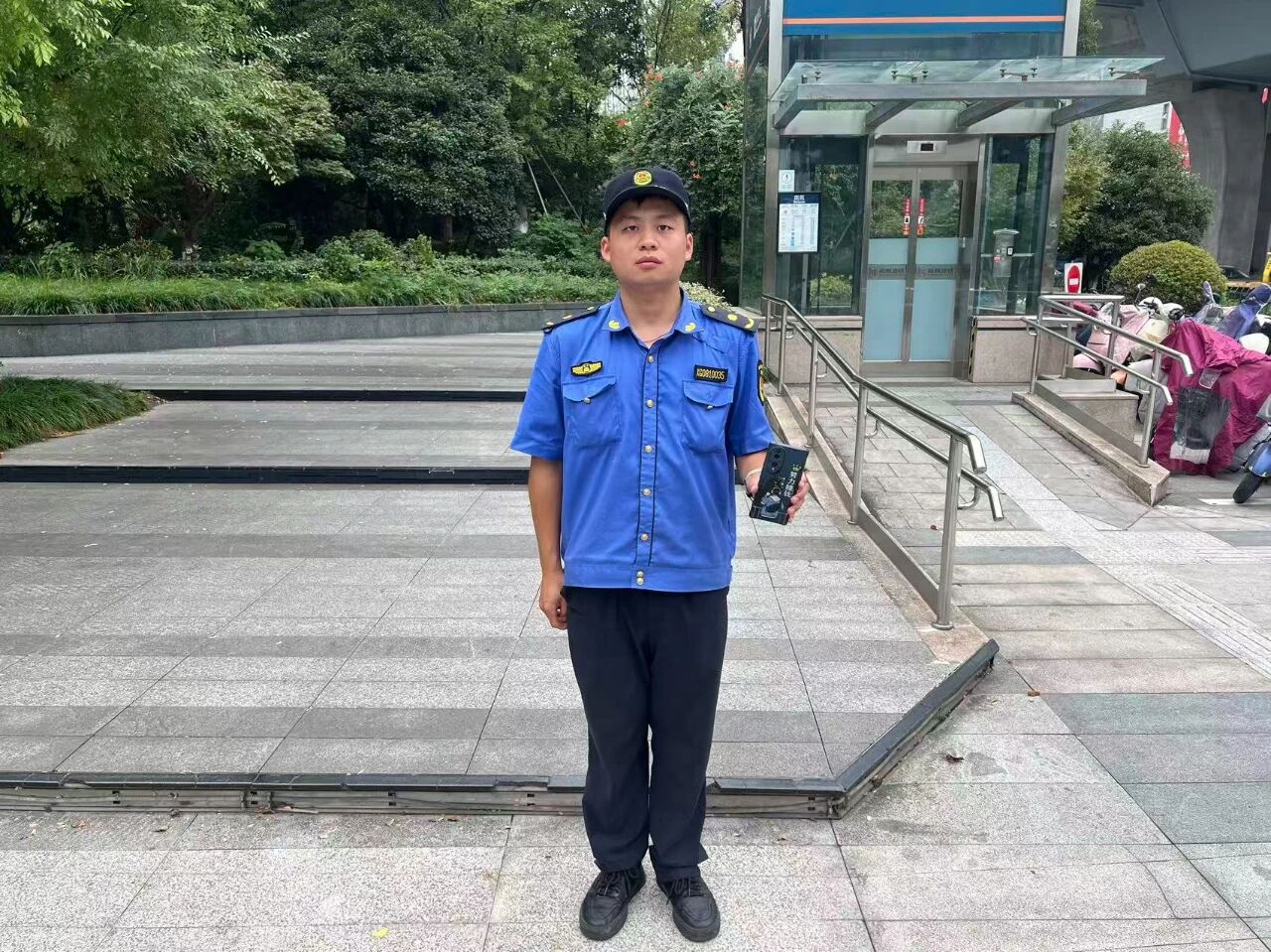 9月29日14:40,浙江民泰公司驻杭州市临平区新城市容项目员工李国庆在南苑地铁站C口巡查时,捡到一部Vivo手机。报告项目负责人后,便在原地边巡查边等待失主。