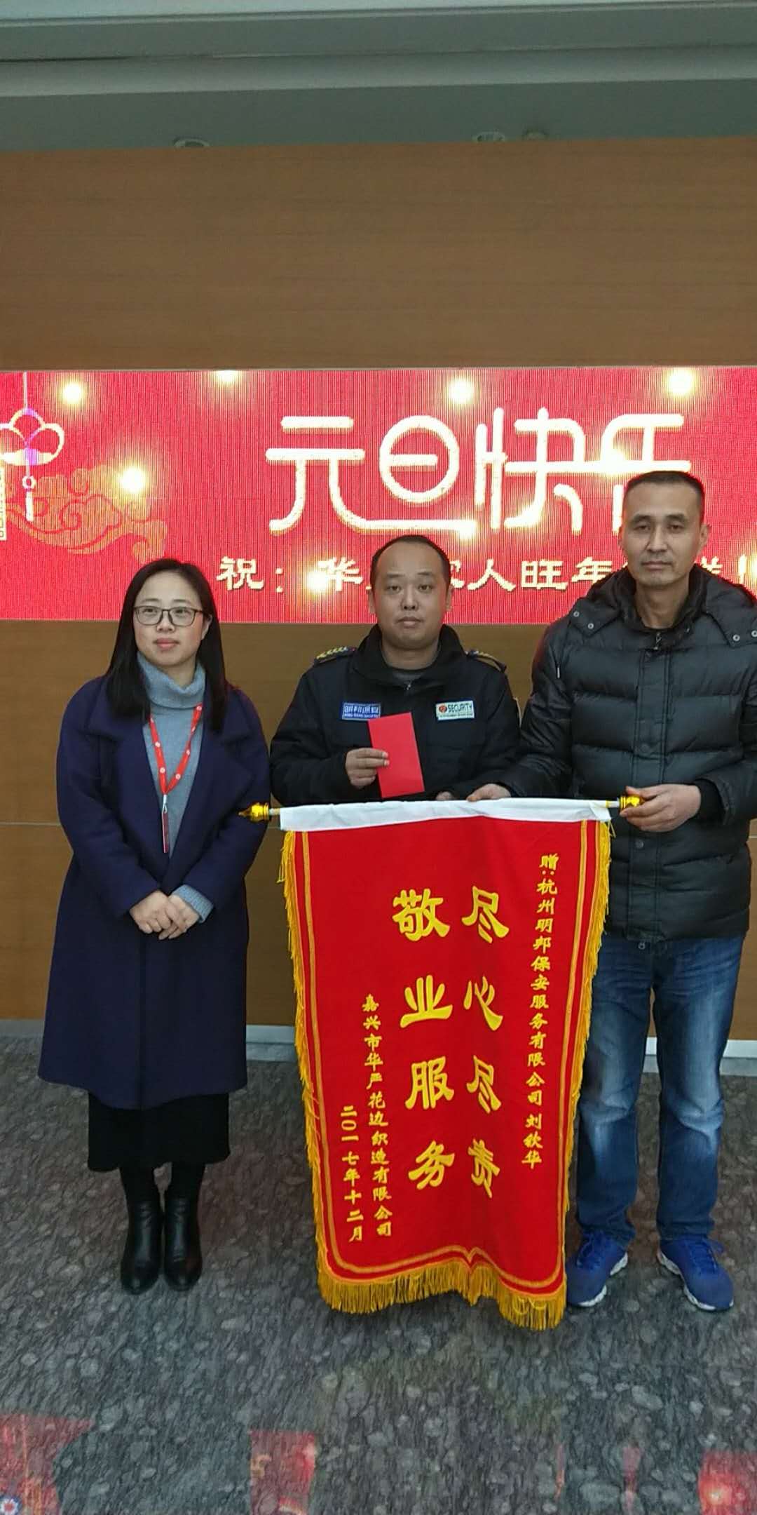嘉兴华严花边织造有限公司保安员工刘钦华,进入公司已经5个年头,他说干一行就要爱一行,虽然保安员岗位待遇并不高,但既然干了这一行,就要担负起维护一方的安保责任,把这份工作干好,对得起这份工资。保安员的工作虽然不是最辛苦的,但也并不是轻松的,作为一名党员、也是领班的他,对于工作,他是敬业的,更是尽责的,他每天要比其他同事早半个小时到公司,对客户单位进行各项安保检查,天气寒冷,检查水管设施及高温天气检查消防设备设施,在平凡的岗位上,日复一日 ,年复一年,从不松懈,尽职尽责保障客户单位安全。