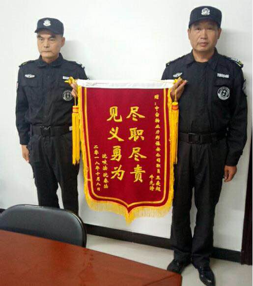 2018年10月4日上午巡逻岗牛先涛,王麦超两名队员在巡逻时发现一位老人走路不小心摔倒,赶忙上前采取救助措施,发现老人头部有轻微流血现象,两名队员第一时间安排送往就近医院抢救,另一名队员及时通知项目班长等人员及时赶到,并联系家属。当日家属已全部到位,老人也安全回到家中休养。 日前,收到小区业主送来的锦旗,对力邦保安公司的保安人员救死扶伤的举动表示感谢。 我们的好保安牛先涛,王麦超对待工作的尽职恪守,充分体现了力邦保安的服务精神,也展示了项目管理和保安员过硬的职业素养,我们向您学习,向您致敬!