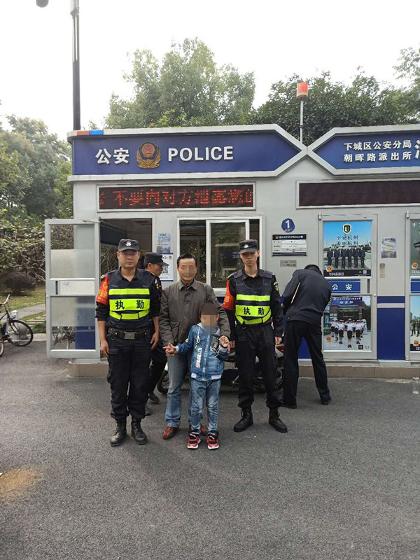 10月18日上午9时左右,公司特勤保安部派驻到朝晖区域的特保队员郑史侠、韩巍伟在西湖文化广场正常巡逻时,发现一名小孩神情慌忙、哭哭啼啼,队员上前询问得知是与家人走失了,便将情况上报值班民警,同时将小孩带到治安岗亭休息并安抚其情绪,一个半小时后,朝晖所值班室通知有家长因孩子走失已经报警,经核实确定是小孩的家长,并通知家长到岗亭与小孩相认,家长到达岗亭后万分感谢,并要求与“挽救了一个家庭幸福的”特保队员合影留念。