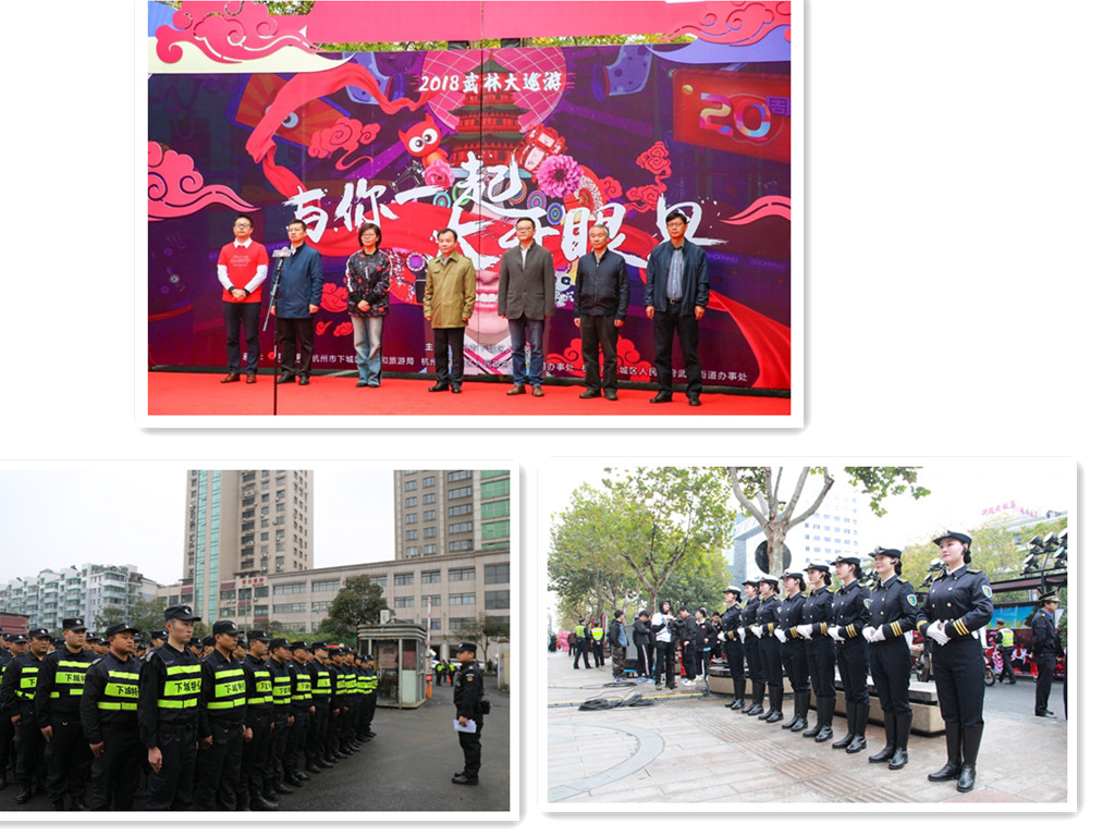 11月17日,杭州延安路至凤起路人山人海热情似火。上午10点半,随着武林之门的缓缓开启,“武林大巡游”正式拉开帷幕!此次巡游以“全民狂欢 一起大开眼界”为主题,由区政府主办,区经旅局、天水街道、武林街道、银泰百货共同承办。区委副书记、区长柴世民,市商务委副主任郑永标,区委常委、宣传部长赵一文,区人大常委会副主任陈康,副区长唐锋,区政协副主席陈圣杭,银泰商业集团负责人,区有关部门和街道负责人,媒体嘉宾等共同观看了活动。巡游以武林银泰为起点,途径武林商圈核心区的延安路、凤起路,全程1.1公里,为保障巡游安全,本次活动的安保任务,由下城区公安分局统一指挥,公司共派出1000余名安保人员协助公安和交警等相关单位进行各项安保工作。
